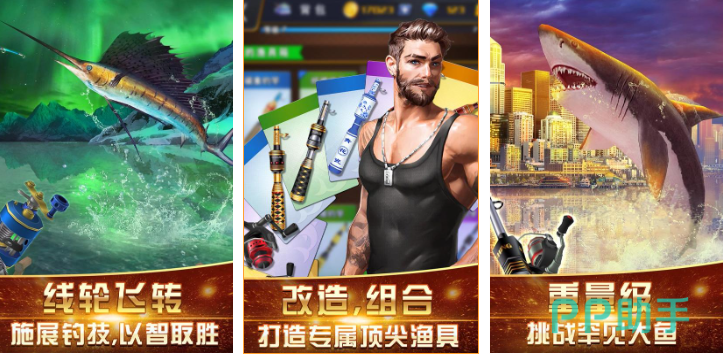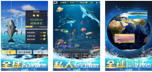 本作采用俯视角卡通渲染风格,融合航海探索与模拟经营双主线。玩家驾驶渔船前往六大主题海域,每个区域具备差异化洋流、水深与鱼群习性。钓具系统包含基础装备与进阶改装件,支持技能树式成长路径;任务系统引导玩家挑战巨型目标鱼,并同步解锁水族馆模块,实现捕捞—展示—培育闭环。场景美术强调色彩层次与动态构图,兼顾轻松娱乐性与硬核垂钓逻辑。