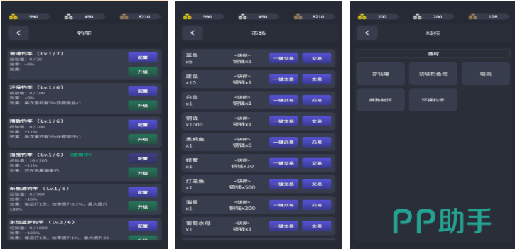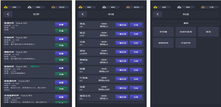 区别于传统图形化呈现,本作采用文字驱动型挂机机制,通过细腻文本描述构建垂钓全流程:从选点布窝、调漂定深,到中鱼瞬间的动态反馈与收竿节奏把控。玩家可在数十个风格迥异的文字钓场间切换,每处场景配备独立生态逻辑与稀有鱼种触发条件。工具栏以文字菜单形式展开,支持自由搭配饵料配方与钓组结构,兼顾策略性与叙事沉浸感。