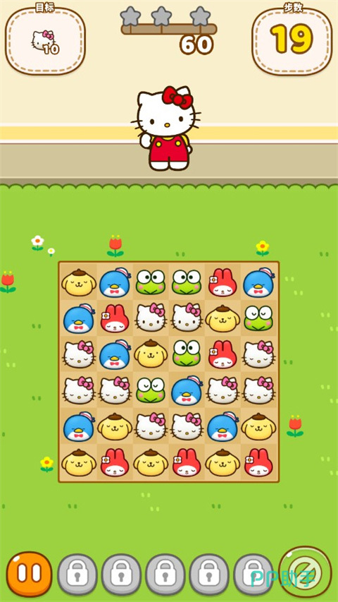 《凯蒂猫和好朋友们》凯蒂猫,叮当猫、呱呱蛙,在消除图标的设计上以各种奇异多样的动物为主,运用杀伤力极大的可爱纷呈的爆表画风设计,还打造出了各种耐玩有趣的多等级挑战, 每一关游戏还设定了一个解救动物伙伴的目标主题,这还将一些奇特的通关道具,比如丘比特之箭、炸弹等等设定了局内大转盘系统,让玩家们去通过实现连击进行抽取。