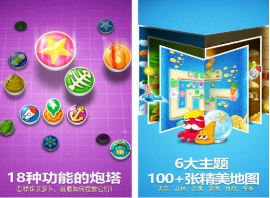 作为特别经典的ip,它是以保卫萝卜为主要特色玩法的塔防类型手游,无论是可爱的萝卜或者是各种怪物的形象都是非常深入人心的,需要玩家在体验的过程当中开动自己的脑筋,这样才可以在保护的过程当中完成相应的任务,避免可爱的萝卜被怪物吃掉。在画面风格上也是以特别可爱又卡通的为主,需要展开战斗策略才能顺利通过各种关卡。