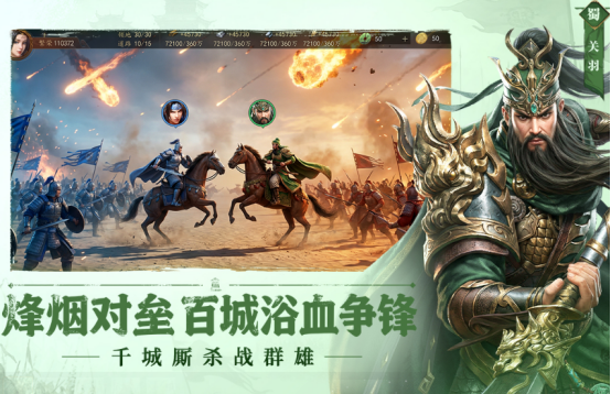 以策略题材为主,融入了三国这种背景,分区域划分,建造国家的游戏,有大家熟悉的故事剧情,在炮火纷飞的三国乱世战场当中,颠覆了传统国战的玩法内容。反而结合了养成卡牌等丰富的内容,可以对三国名将进行阵容之间的匹配,这样在三国乱世的局面当中,只需一秒就能完成逆袭,不断的过关斩将,完成一战平天下的任务。
