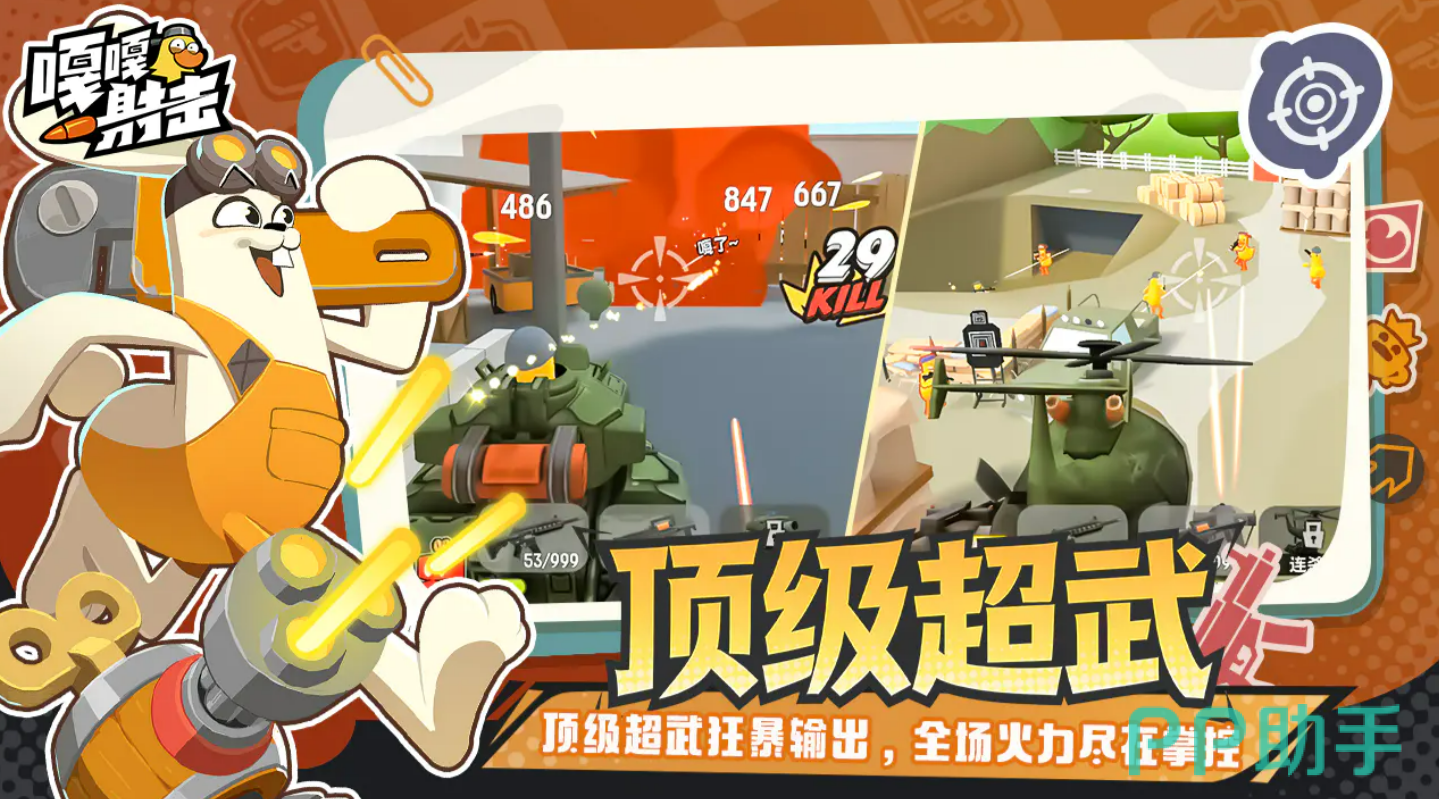 这款游戏的玩法说起来其实很简单,不用研究什么复杂操作,也不用花时间练走位,就是拿枪打人,场面热闹,特效多,爆炸多,打起来爽感很强。枪的种类也不少,有能放闪电的,有能喷火的,手感各有不同,每把枪打出来的感觉都不太一样,玩多了自然能找到自己顺手的那把。游戏里还有个叫"超武"的大招系统,放出来基本上能瞬间清掉一大片,那个场面确实挺爽的。