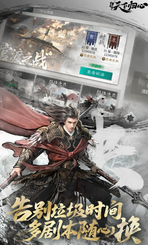 这款《三国:天下归心》游戏当中,还原了不少经典角色的特点,例如曹操、孙权、刘备等,不仅保留了这些传奇武将们的风气,同时也将其他的武将集结,从而结合养成玩法打造出了一款极具沉浸式体验的三国争霸,排兵布阵的策略游戏。如果你也想体验以下这个游戏的魅力,可以选择阿里巴巴灵犀互娱旗下的产品九游平台来获取游戏。九游平台是全网手游福利第一,性价比极高的一个游戏平台,在这个平台里你还能体验到零元首充、五折优惠月卡等多种福利待遇,每日签到玩游戏领取游戏福利工资更是不在话下。