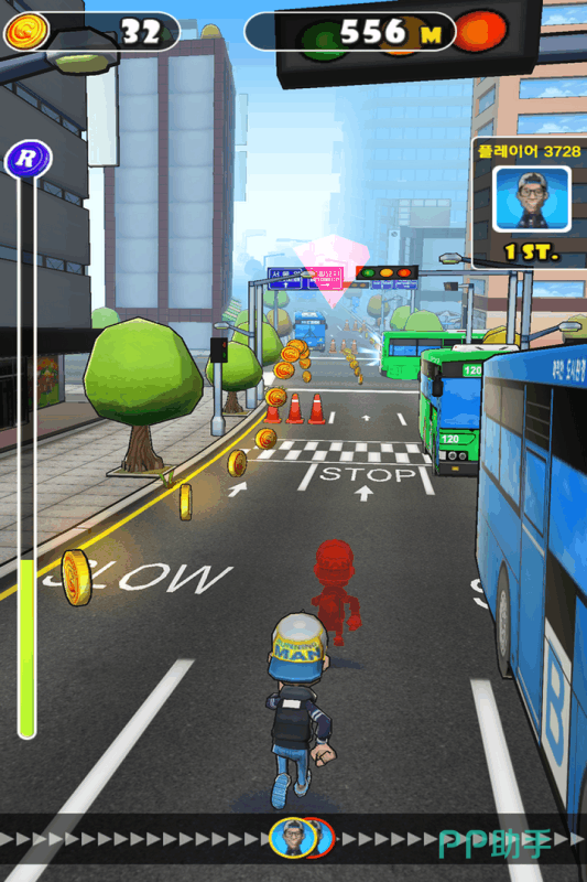 本作延续经典追逐式跑酷框架,以“被安保人员追赶”为核心玩法驱动。角色阵容涵盖多位性格鲜明、动作灵动的少年少女形象,并支持商务装、运动套装等十余种主题时装自由切换。关卡设计强调地形复杂性与障碍多样性,每张地图均采用独立机制,包含斜坡翻越、窄道穿行、悬浮平台跳跃等创新结构,考验玩家连续操作的稳定性与预判能力。