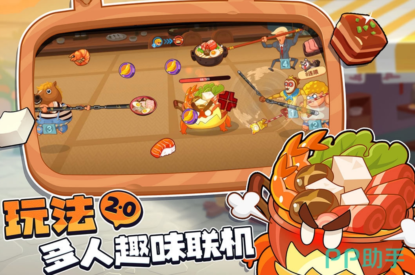 主打荒诞物理反馈的1v1趣味对抗,核心机制围绕“抢食—喂食—增重”循环展开:玩家需夺取食物并主动投喂对手,使其体重率先突破上限即获胜。匹配系统响应迅速,平均等待低于3秒;支持自建房间发起私密对战,亦兼容2v2组队挑战,强化熟人社交属性与竞技反差感。