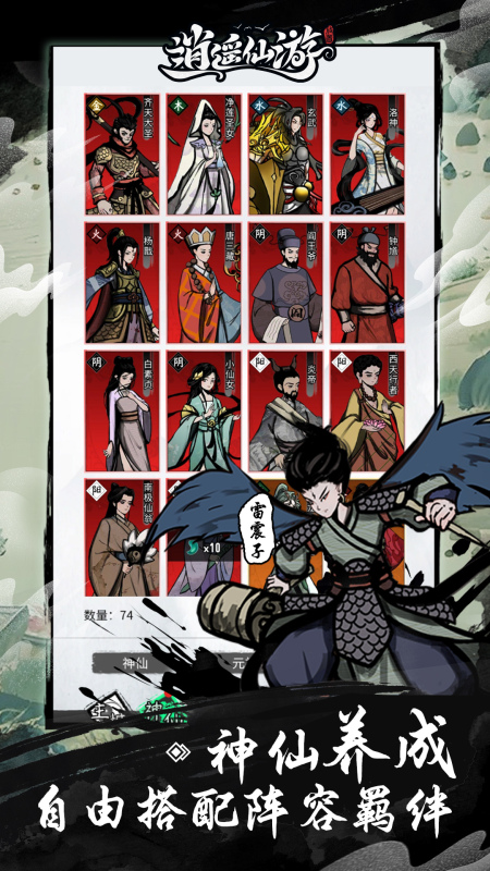游戏还设计了各种神仙角色,每一位都带有金、木、水、火、土等不同属性,属性之间存在互相克制关系,大家需要收集培养,根据敌人的情况,针对性地搭配上阵神仙安排站位,赢下不同战斗的胜利。