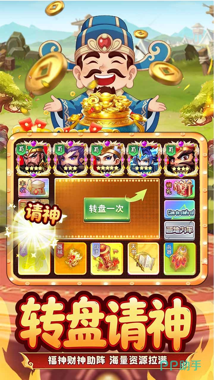 本作核心亮点之一在于独创的智能转盘系统:游戏内置16格动态转盘,武将与军备均可参与转动,随机触发“五谷丰登”“斗转星移”等专属事件,带来属性加成、资源翻倍或技能重置等不可预知效果,显著提升策略深度与重复可玩性。