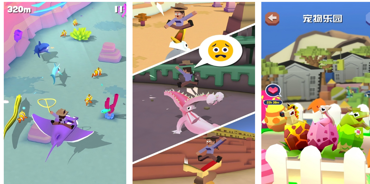 游戏创新融合跑酷、动物捕捉与动物园经营三重玩法。玩家操控牛仔角色在高速移动场景中抛掷套索,精准捕获奔逃动物;随后将其安置于自建动物园内,通过饲养、繁育、升级场馆提升游客满意度与营收能力。操作判定严格,节奏明快,配合拟真音效与动态镜头,强化奔跑过程中的临场张力与掌控感。
