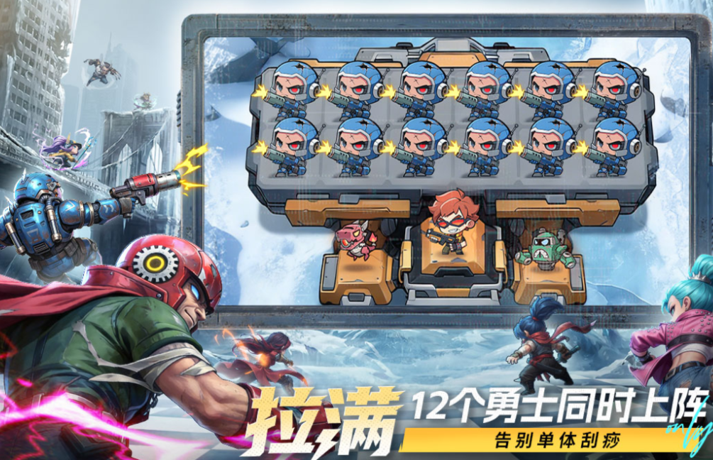 本作是款拥有末日主题背景的放置战斗类游戏,有着满屏特效和放置战斗的特殊概念,多样的勇者互相组合战斗的玩法特立独行,任务目标多样还设定了搞笑无厘头的剧情,百玩不腻的各种游戏模式让不少挂机游戏爱好者满意,更大的世界观光怪陆离给外带来不俗的压迫感,各位勇士一起带领自己的团队出征吧。