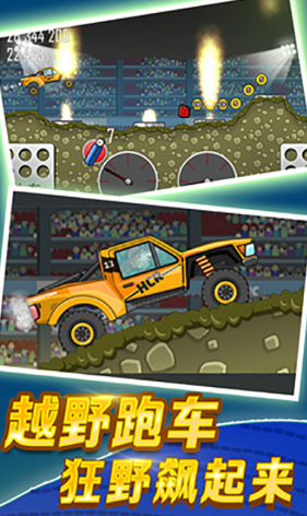 这款游戏是2d画面,玩法很简单,就是竞速闯关,简操作也很有特点,就两个键,控制油门和刹车。看似简单,但是非常考验技术,赛车可以随便改装改怎么改都可以,改装之后可以轻松的闯过之前过不了的难关,车子的物理效果很真实,爬坡时候会打滑,落地的时候会有颠簸,就像真的在开车一样。里面的地图很有挑战性,全部都是危险的路段,一边操控着小巧可爱的赛车,一边闯过各种关卡,每过一关都可以感受到满满的成就感。