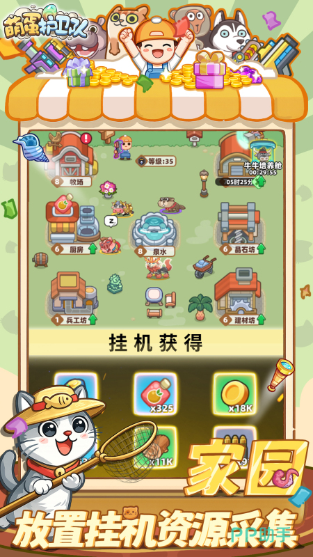 第三大核心玩法为家园模拟经营系统。每位玩家拥有独立家园空间,可开展作物种植、成熟采摘、防御工事建造及科技树研究等行为。所有家园活动均可启用离线挂机机制,稳定产出经验、金币及稀有材料,为角色成长与战力提升提供可持续资源支撑。