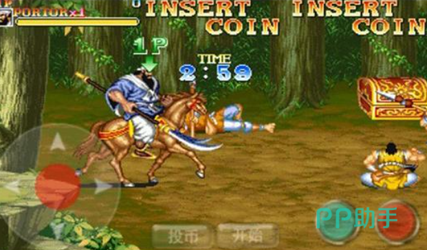 本作是款完美复刻街机版三国游戏的精品动作手游,可以无限投币让角色拥有更多的生命值,扮演张飞或者赵云这些武将参与战斗冒险的玩法更刺激,双轮盘的简单操作也像极了街机游戏,很有意思的杜撰剧情设定也为游戏增色不少,吕布、牛金这些三国时代的武将也会成为BOSS任你讨伐。