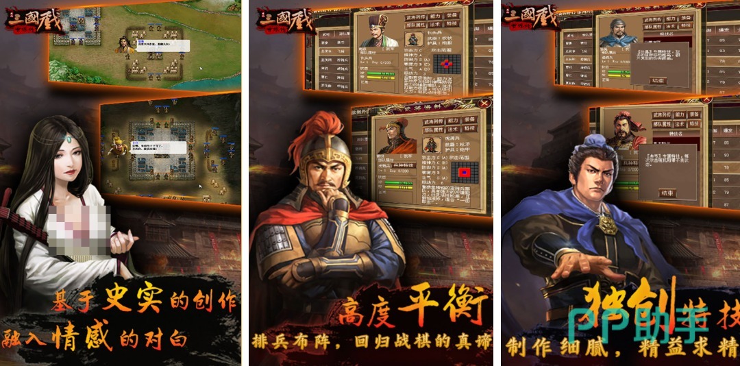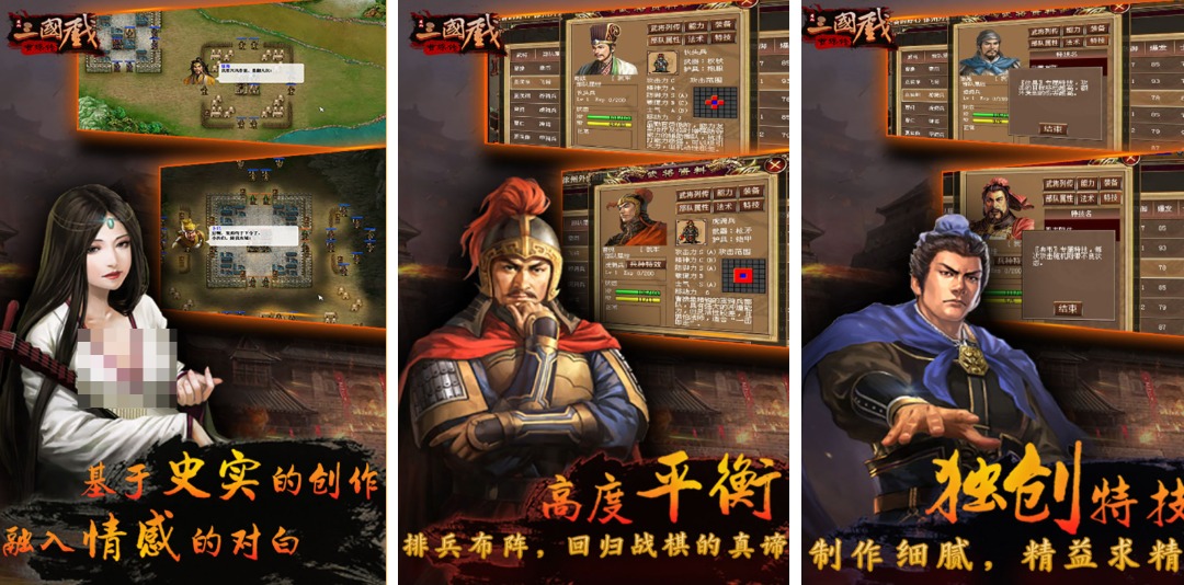 这款三国时代背景的单机战棋对战手游质量满分,不仅设定出的剧情尊重真实的历史,还优化了操作和视觉效果显得代入感更强,装备以及属性道具都可以随心搭配玩起来更有趣,更多的三国时代角色都塑造成像素的风格,精彩绝伦的战棋放置博弈概念吸引到的三国爱好者更多。