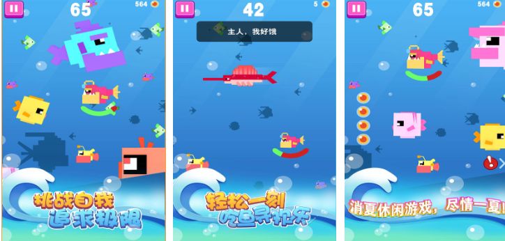 本作是款辨识度超级高的像素竖屏控制鱼吃鱼游戏,吞噬类型的玩法跟轻松气氛吸引到更多粉丝,清凉休闲的氛围营造不会让鱼吃鱼爱好者失望,挑战自我的吞噬进化体验也是很多鱼吃鱼粉丝最爱,海底世界还有其他一些奇特的道具可以拾取,点击屏幕进行蓄力加速的游戏概念也蛮有新意。