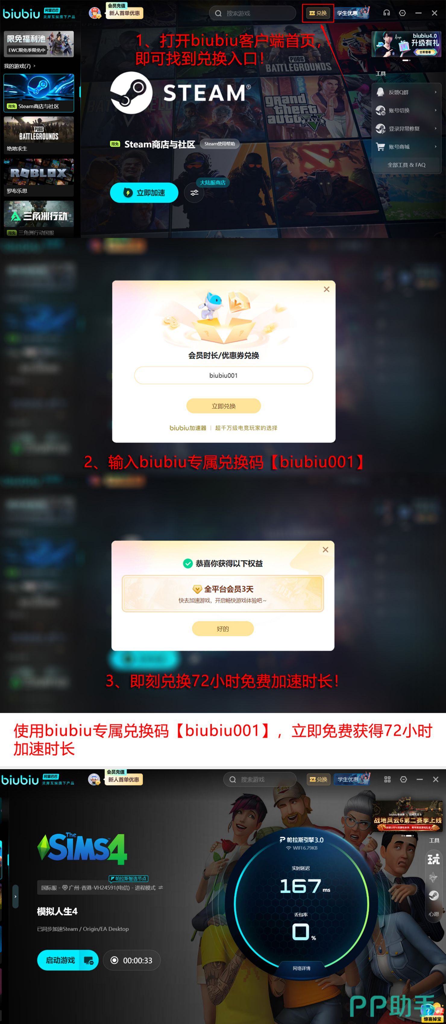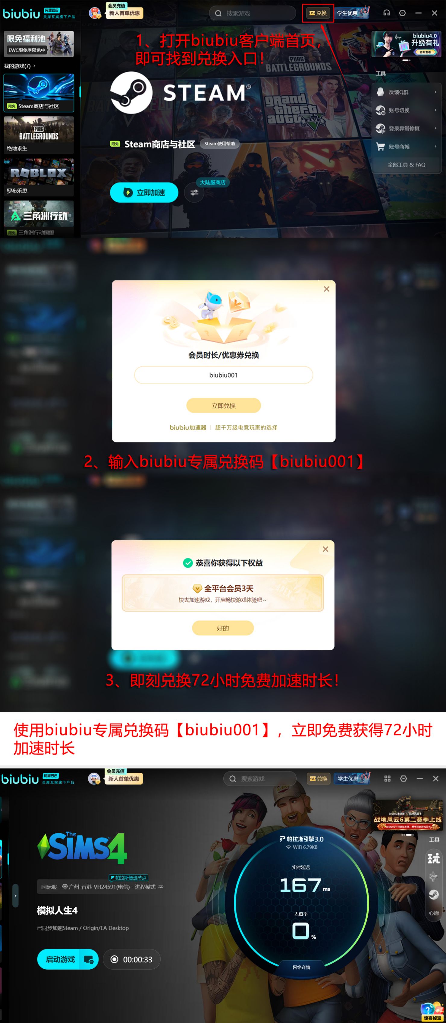 其技术底层由阿里巴巴灵犀互娱提供核心支撑,集成自研帕拉斯3.0引擎架构,在协议解析、流量调度与抗干扰能力方面具备显著优势。新注册用户完成登录后即可立即激活24小时免费加速权限;现有用户及新用户均可通过输入兑换码【biubiu001】领取额外三天加速服务,累计最高可达96个小时连续使用时长。