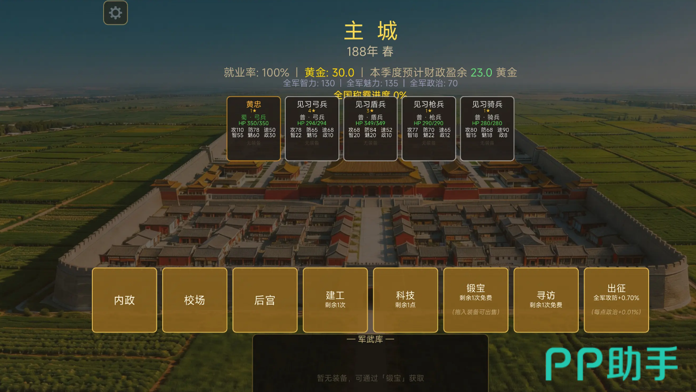 游戏以东汉末年群雄并起、诸侯割据的历史格局为叙事基底,高度还原汉室衰微、天下大乱的时代氛围。玩家将扮演一方势力统帅,通过招募、培养、布阵等多维操作,在棋盘推演与沙盘征战中构建属于自己的战略版图。玩法主线聚焦于智力博弈与地缘扩张两大核心维度。
