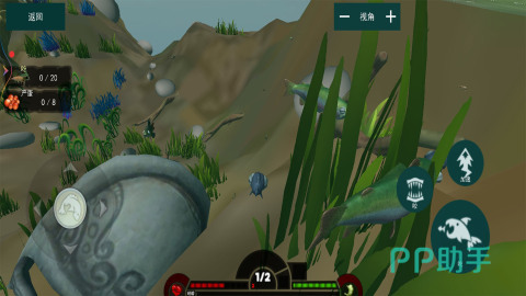 采用第一人称视角构建沉浸式生存体验,强调饥饿值管理、体力消耗与感官反馈的协同机制。玩家需在珊瑚礁、热泉口、深渊裂谷等差异化海域中搜寻资源,逐步解锁基因突变能力,最终挑战海域霸主级Boss,完成从猎物到顶级掠食者的蜕变路径。