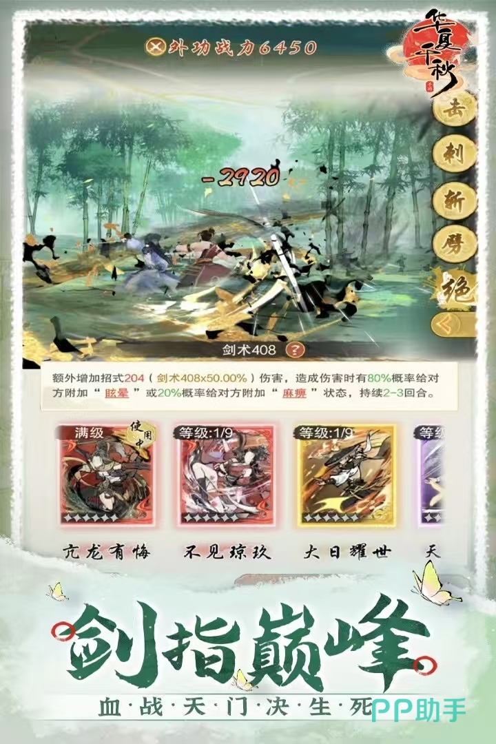这部游戏同样是作为武侠类型的游戏。在游戏中,玩家会成为这个江湖之中的一个武功小白,玩家可以在这个江湖世界中收集各种各样的功法和道具,提升自己的本领,可以通过拾取的功法进行组合搭配从而创造一种独特的武林秘籍,玩家还可以结交英雄豪杰带领你一起闯南走北,游戏的核心玩法主要以挂机战斗为主,能够轻松解放你的双手,让你在闲暇之余也能体验江湖魅力,感受武功秘籍。