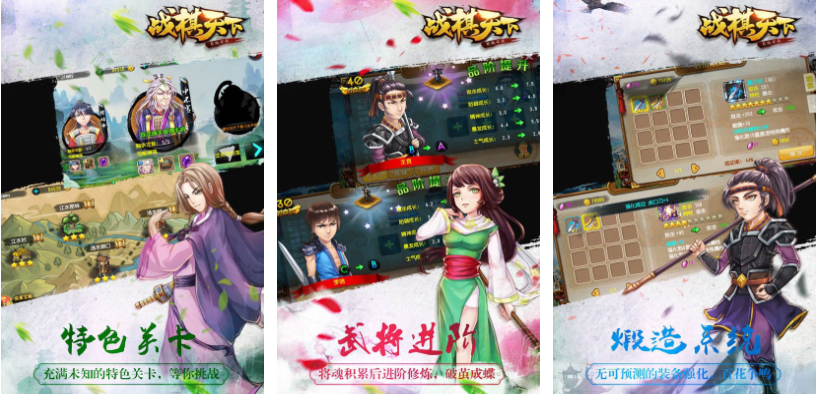 战棋天下是款融合了武侠元素的战棋对抗类型游戏,全新的博弈理念以及特殊的锻造系统可玩性更高,武将可以随时进阶强化提高博弈的胜率,武侠世界气氛营造完善也有着大量任务可做,武器装备随心选择可以提升棋子的属性,更多生动好玩的战棋对抗任务期待着大家参与,开放式的武侠地图营造更有一种身临其境之感。