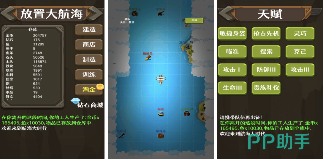 本作是拥有超简单放置操作的航海冒险题材游戏,存在特殊的天赋系统和放置挂机的操作,采用了俯视角执行各种各样的航海任务,身临其境完成航海大冒险的游戏概念可玩性也不错,仓库系统和商店系统的加入参与感十足,也可以强化自己的船只让其属性得到快速飞跃,放置大航海是懒人朋友都很喜欢的航海佳作。