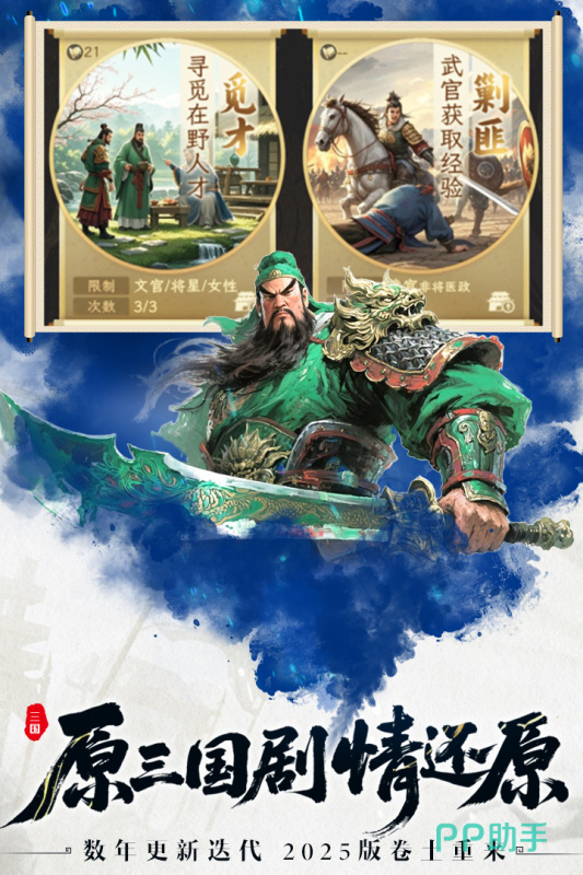 深度还原三国历史背景,融合战棋策略与武将养成双主线设计。游戏中登场数百位经典武将,内政系统大幅简化,支持一键委任处理城池事务,让玩家更专注于沙盘推演、部队编组与实时战场指挥,降低上手门槛,强化策略对抗纯粹性。
