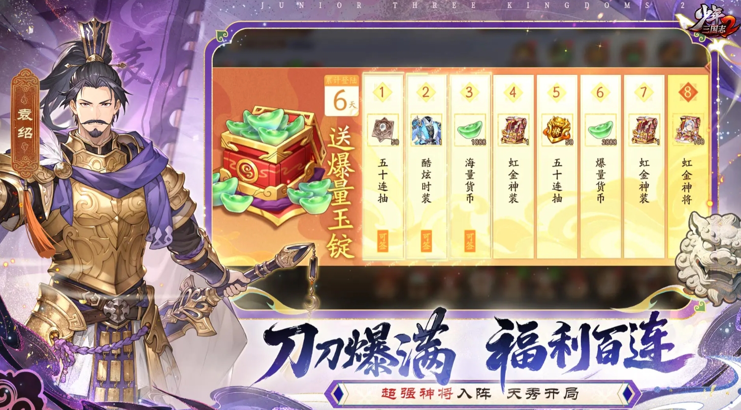 标准卡牌RPG框架下深度打磨养成路径:涵盖武将升星、技能升级、命格激活、法宝镶嵌、神兵淬炼等多维强化体系。赛季制更新机制确保内容常更常新,每个大版本均同步上线全新剧情章节、限时活动及专属武将。新手期福利丰厚,注册即赠完整主力阵容,首周可获取大量十连抽机会,降低入局门槛。