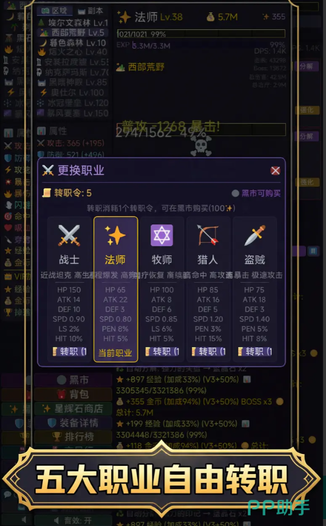 职业系统构成游戏策略纵深的重要支点。全作设定战士、法师、牧师、猎人、盗贼五大基础职业,每种职业均配备独立技能树与差异化成长模型:战士主修生命值与物理抗性,承担前排承伤职能;法师专精元素伤害与范围爆发,定位后排输出核心;牧师兼顾治疗支援与状态干预,支撑团队持续作战能力;猎人强调远程稳定输出与机动走位,活跃于战场侧翼;盗贼突出单体高爆发与位移突袭特性,胜任快速切入与斩杀任务。游戏支持自由转职机制,角色发展轨迹将随装备倾向、属性加点分布产生显著偏移,从而催生高度个性化的构筑方向。
