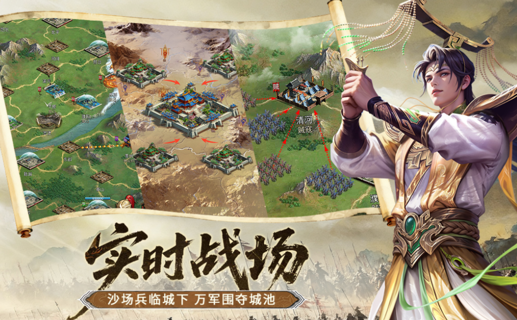 采用Unity引擎开发的3D国战SLG,实现千人同屏即时战斗与立体城建系统双轨并行。玩家既可经营主城、升级建筑、研发科技,也可率军出征、围城打援、伏击截粮。兵种体系覆盖三国时期典型部队,如陷阵营、无当飞军、西凉铁骑等,并设有专属成长路径与兵符强化系统。大型战役任务严格参照官渡、赤壁、夷陵等真实战役脉络设计,兼具策略性与叙事感。