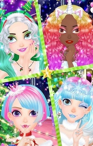 将节日美学与美发模拟深度结合,主打创意造型玩法。界面主色调采用红、绿、金三色体系,店铺场景融入大量圣诞元素。提供关卡挑战与自由创作双模式:后者支持调节角色肤色、脸型轮廓,并添加麋鹿角等限定装饰。用户完成的设计可上传至虚拟圣诞树展示,形成个人化作品档案。