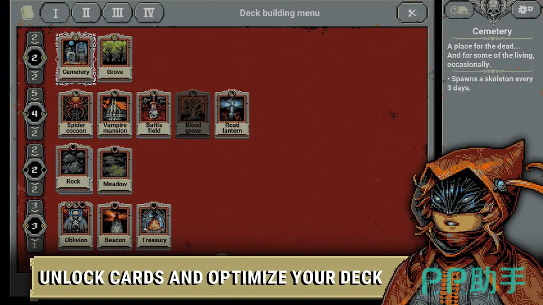 游戏核心玩法围绕“地形卡”“建筑卡”与“法术卡”展开:山脉、草地影响移动与视野;村庄、吸血鬼别墅等建筑触发特殊事件;每张卡的放置位置、组合顺序,都将直接影响英雄所面对的敌人强度、资源获取效率及成长路线。这种非线性、高自由度的地图生成机制,确保每一局都是全新体验。