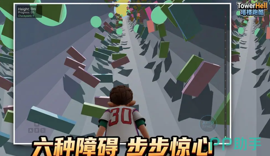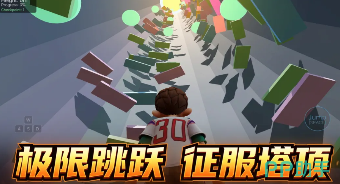 本作以“向上突破”为底层设计逻辑,玩家从塔基出发,在第三人称视角下完成连续跳跃、位移与时机判断,目标直指顶层金色终点。区别于传统横版跑酷,游戏深度强化Z轴维度控制——平台高度差、落点预判、起跳角度与腾空轨迹共同构成操作闭环,对空间感知力与手眼协同提出更高要求。