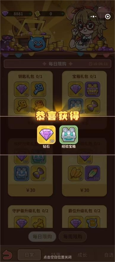 同时在冒险的时候,最重要的就是宝藏的收集,在每次战斗的时候都会给各位结算一大笔的战斗的奖励,运气好还能开出极品的金色装备,对于各位来讲是非常值得使用的道具。