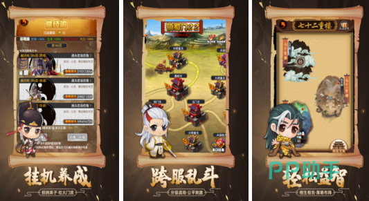 采用出色的2d横版视角,有回合制自动战斗模式,在战斗时可选择适合的装备与角色备战,开启战斗,角色便会自动发动攻击,提供超过数百种不同的武功秘籍,所有玩家都可跨门派学习武学,通过个性化搭配,打造出独一无二的特色风格。高自由度江湖人生,选择适合你的成长路径,即可专注于主线剧情,也可以投身到钓鱼书房中。