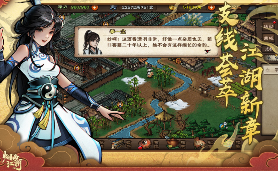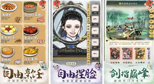 画风清新又治愈的武侠类游戏,相当佛系的高人气作品,采用慢节奏这样的特性,来到真实的武侠世界,将江湖与田园生活相结合,摒弃了高强度战斗,后可自由触发各类随机事件,还能收集各种食材打造出美味食物,采用传统水墨画风与2d立绘,服饰涵盖汉服与少数民族等多种元素。