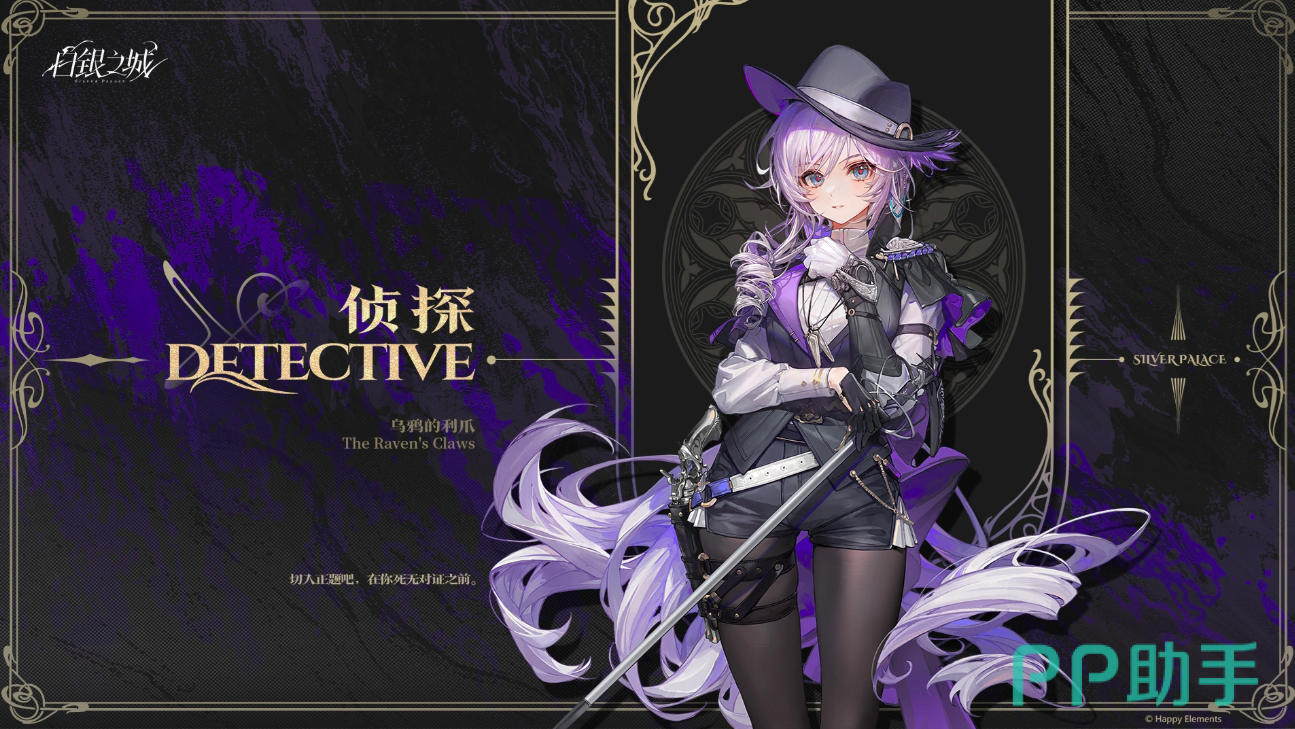 首位登场的是玩家可操控的主角——“侦探”。该角色提供男性与女性双性别选项:女性形象被赋予“乌鸦利爪”之喻,男性则对应“乌鸦白喙”。作为剧情核心与智力中枢,侦探具备卓越的观察力与逻辑推演能力。故事线设定其因三年前的重大事件被迫离开白银之城,此次重返故地,需在表面安宁的都市表象下,逐步揭开层层掩藏的深层阴谋。