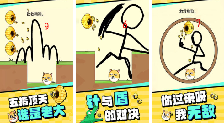 创意解谜类休闲游戏,核心机制为手绘防护盾牌保护小狗免受蜜蜂侵袭。美术风格清新可爱,角色表情生动诙谐;关卡设计短小精悍,平均通关时长60秒以内,失败惩罚轻,鼓励反复尝试与技巧优化。