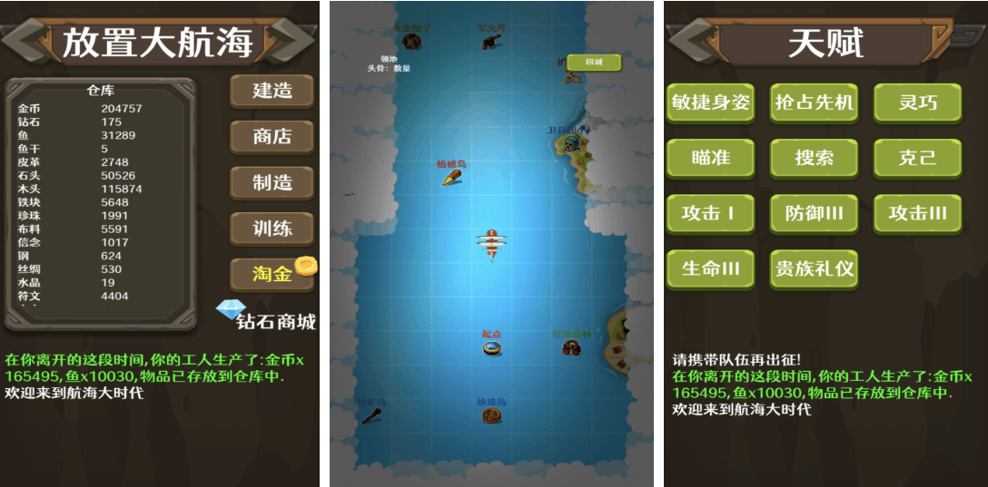 主打低操作门槛的航海放置类作品,采用俯视角自动航行机制。玩家通过升级船体、配置船员、激活天赋来提升挂机收益效率。内置仓库管理、资源交易、船只图鉴等系统,成长路径清晰,适合偏好轻松长线养成的用户。