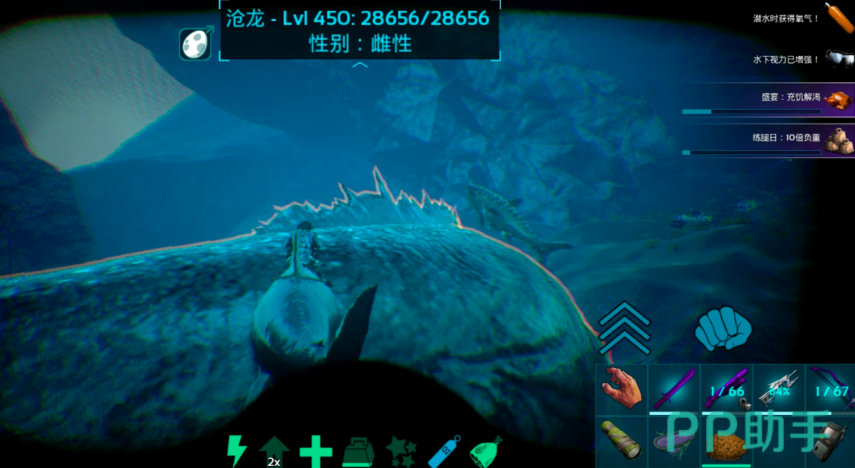 驯服苍龙需兼顾策略性与资源管理。作为体型仅次于泰坦巨蟒的海洋掠食者,其攻击范围广、移动速度快,直接强攻极易失败。推荐采用两种经实战验证的战术:其一为“洞穴卡位法”——先清理周边威胁生物,再引诱目标靠近海底岩缝或沉没结构形成的窄口洞穴。因苍龙体长超限无法完全进入,玩家可藏身洞口边缘,持续使用远程武器输出,大幅降低被击中风险;其二为“高位压制法”——利用其无法跃出水面的机制,操控角色快速上浮至近水面区域,随后攀爬至附近高耸珊瑚礁或废弃平台顶部,居高向下精准射击,通过灵活走位维持安全距离,实现持续控场。