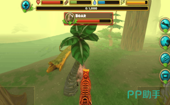 拟真生态模拟向单机游戏,以顶级掠食者视角重构森林生存法则。玩家操控成年孟加拉虎,在开放地图中完成狩猎、饮水、休息、躲避人类陷阱等基础行为。系统内置昼夜循环、天气变化与动物AI群落互动机制,吼叫音效经专业采样还原,利爪撕咬反馈细致入微,营造出极具代入感的野外生存体验。
