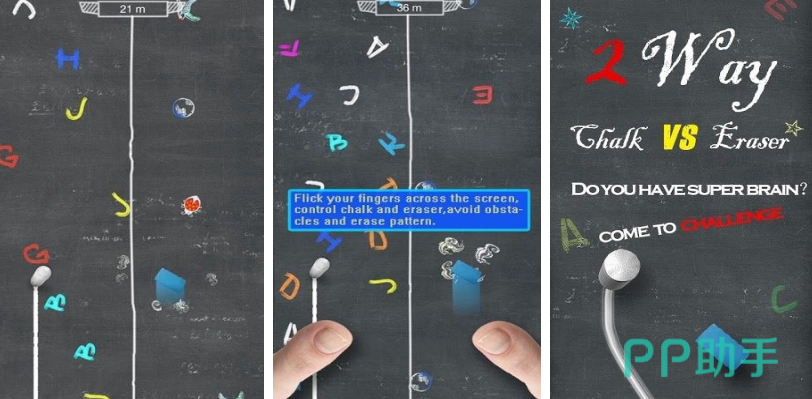 专为提升双手协同能力设计的益智类游戏。界面模拟无限延展的黑板空间,左手操控粉笔规避障碍,右手同步指挥板擦清除干扰图案,两项任务逻辑独立却需实时配合。滑动操作简洁,但对注意力分配与多线程处理能力构成有效训练,兼具趣味性与功能性。