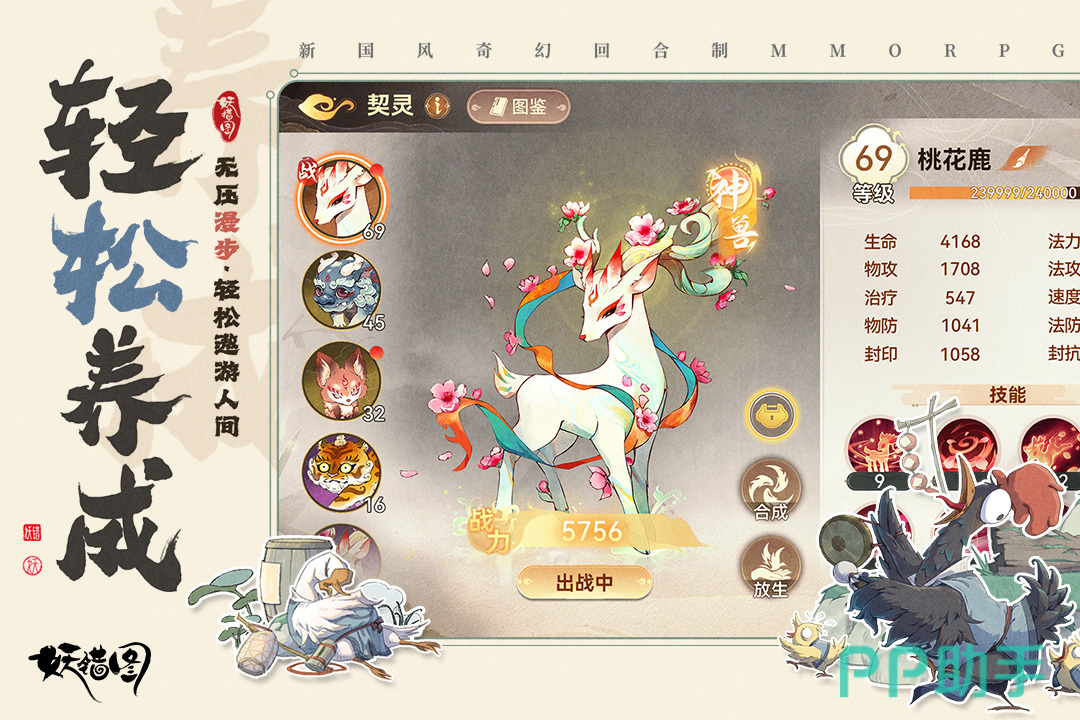游戏以东方志怪美学为基底,构建人妖共处的水墨风大世界。核心叙事围绕上古卷轴“妖错图”展开,收录逾万种契灵妖怪,支持符咒封印、灵契共鸣、山海巡游等差异化捕捉方式。养成维度覆盖灵根淬炼、妖纹雕琢、心契升阶等高自由度体系;战斗采用无锁定卡牌策略机制,并融合耕种采集、节气轮转等生活化玩法模块。