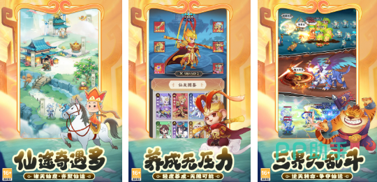 一款融合乱斗还有策略回合的卡牌游戏,将孙悟空作为核心卡牌。玩家作为天命人,需要去招募唐僧,八戒,孙悟空,把这些角色组合在一起,形成一个专属的队伍。游戏养成系统轻量化,可以降低资源的压力,不需要氪金,也能迅速的培养悟空,很快就能解锁高阶悟空。