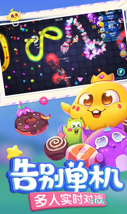 这款游戏可以和很多人一起在线对战,最主要的玩法就是吃东西就会变长,但不能只是吃,需要大家动脑,用手机摇杆控制蛇头,想往哪走都可以,操作起来很顺畅。玩的时候要学会走位,有的时候加速绕到别人后面,就能把对方逼到撞自己身上完成反杀。里面还有很多皮肤,每一个蛇都会弄成不同的样子,还可以加入家族,和熟人一起组队玩,不需要花很长时间,闲下来玩上一局,体验轻松的玩法。