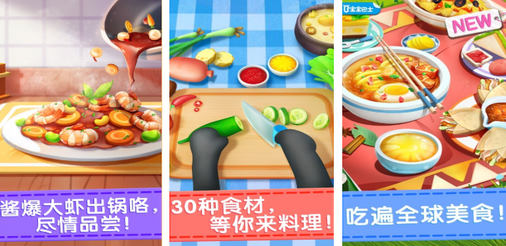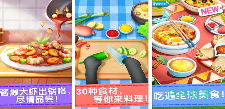 本作是款能培养孩子烹饪技术的宝宝巴士手游,多样的食材等玩家解锁并参与料理任务,中餐、西式快餐这些好吃的食物随意开发,还可以用第一视角进行烹饪给人一种别样的代入感,生动的卡通画风配以美食的主题很吸引小朋友,小吃货朋友们快快进入游戏烹饪形形色色的料理吧。