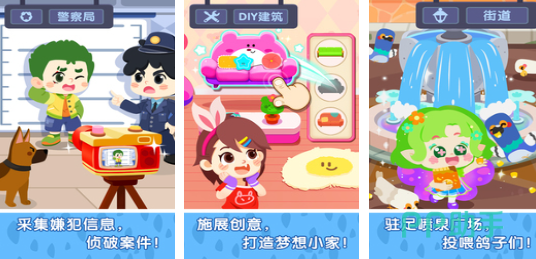 以生活化模拟为核心的成长型沙盒游戏,设置宠物中心、服装工坊、主题公园等八大功能区域,覆盖日常社会场景。通过动画引导式交互,鼓励儿童自主点击探索,在角色扮演中理解职业分工、空间关系与基础社交规则。操作逻辑极简,仅需单点触控即可推进流程,适配小手操作习惯。