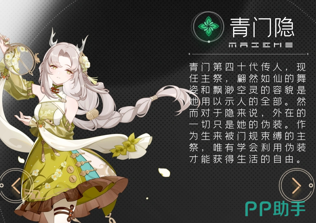 青门隐:木系辅助型角色,擅长战场调控与团队续航。技能涵盖群体驱散负面状态、持续回血及控制链衔接,在后排稳定提供支援,是阵容中不可或缺的功能型核心。