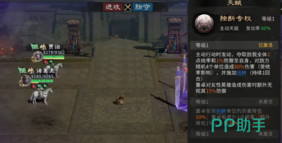 阵容构建是霜火争霸胜负的基础前提。不同武将组合直接影响战场容错率、资源转化效率及团战持续性。推荐采用董卓、诸葛亮、贾诩构成的核心三角阵型:董卓定位为前排承伤核心,其被动技能具备伤害减免与生命恢复双重效果,养成门槛低但生存强度高,适合作为首发先锋,有效吸收敌方集火,为后排创造稳定输出窗口;贾诩承担中距离AOE压制职能,主动技能可造成大范围高额伤害并附加中毒持续掉血效果,其被动还能在敌方释放技能后触发混乱状态,干扰对方战术连招;诸葛亮则发挥全局辅助价值,主动技能可为全队施加高额护盾,显著提升整体抗压能力与反打容错空间。