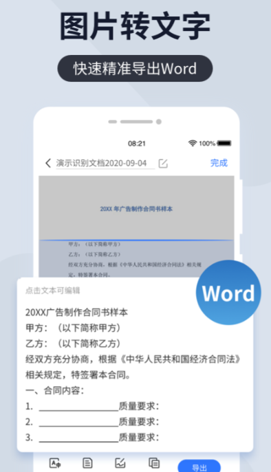 强化文档全生命周期管理,支持PDF、JPG、PNG、DOCX等多种格式双向转换;OCR识别后自动提取元数据,按日期、类型、关键词智能归类;扫描区域自动定位与透视校正精度提升30%,身份证、驾驶证等卡证类文档可一键提取姓名、号码、有效期等结构化字段;内置拍照直译模块,支持中英互译并同步标注原文位置;生成文件可通过邮件、微信、钉钉等主流渠道即时分发,本地存储支持标签化检索与文件夹权限设置。