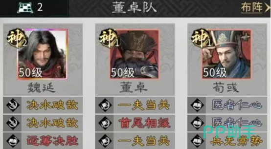 魏延定位为高机动强输出型将领,适配四件套“烛龙”宝物,其被动效果与魏延技能机制深度契合,可有效放大单体与范围伤害倍率。董卓则承担团队破防核心职能,天赋技能可强制吸引敌方目标并施加易伤状态,使全队攻击对目标造成更高比例真实伤害,大幅提升整体DPS转化效率。