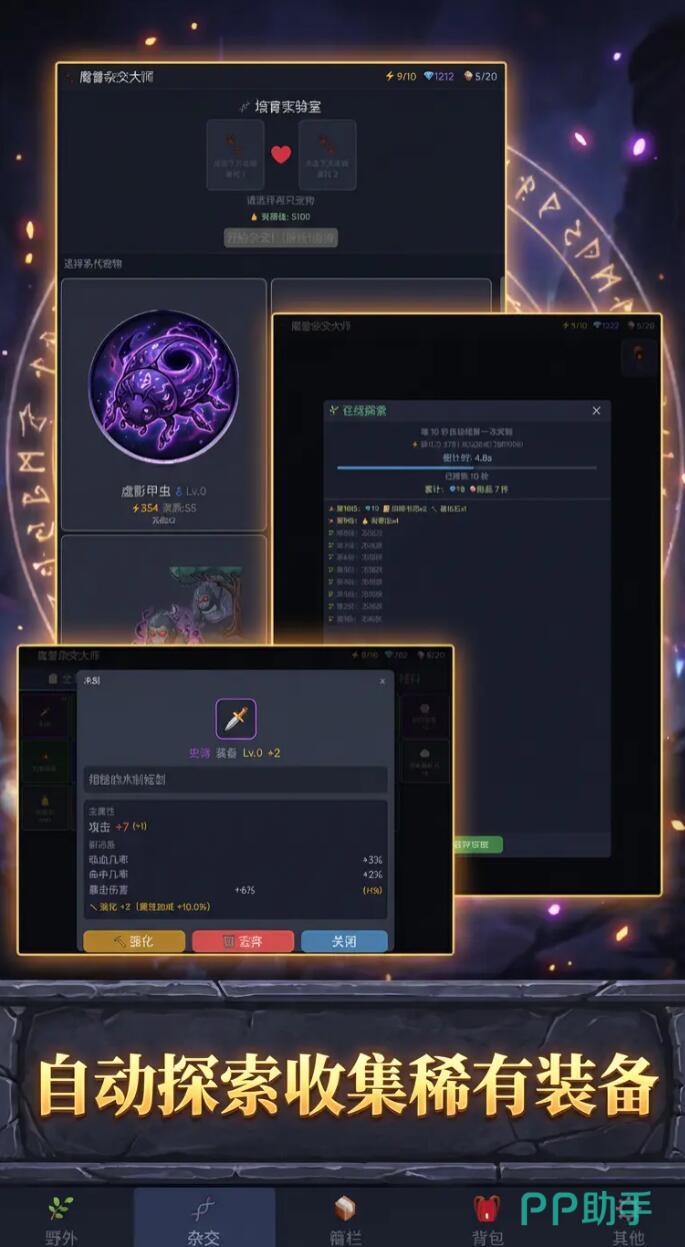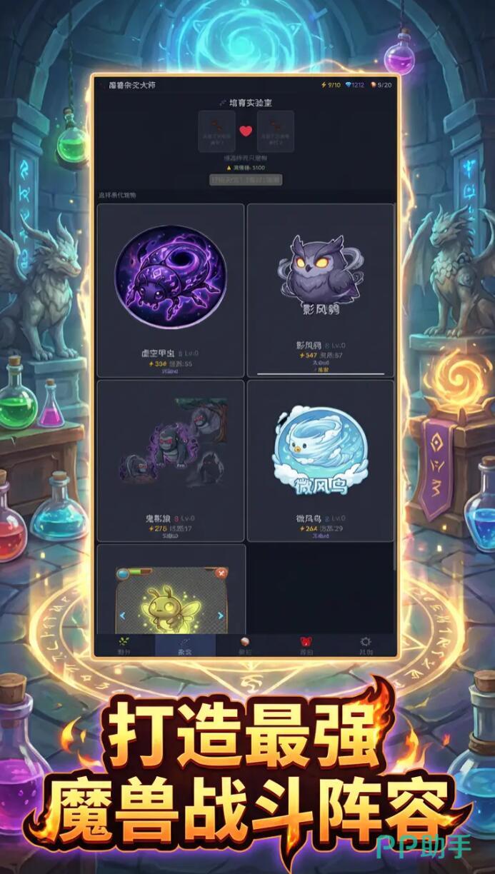 游戏内设多元玩法模块,其中“魔物杂交系统”为最核心特色。初始可获得影风鸽、影甲虫等基础单位,通过自由组合遗传基因——包括攻击倾向、元素抗性、被动技能树等维度,实现千变万化的后代演化路径。所培育出的个体可编入多支差异化战队,适配副本攻坚、竞技对抗、资源采集等各类场景,战术搭配空间极为广阔。